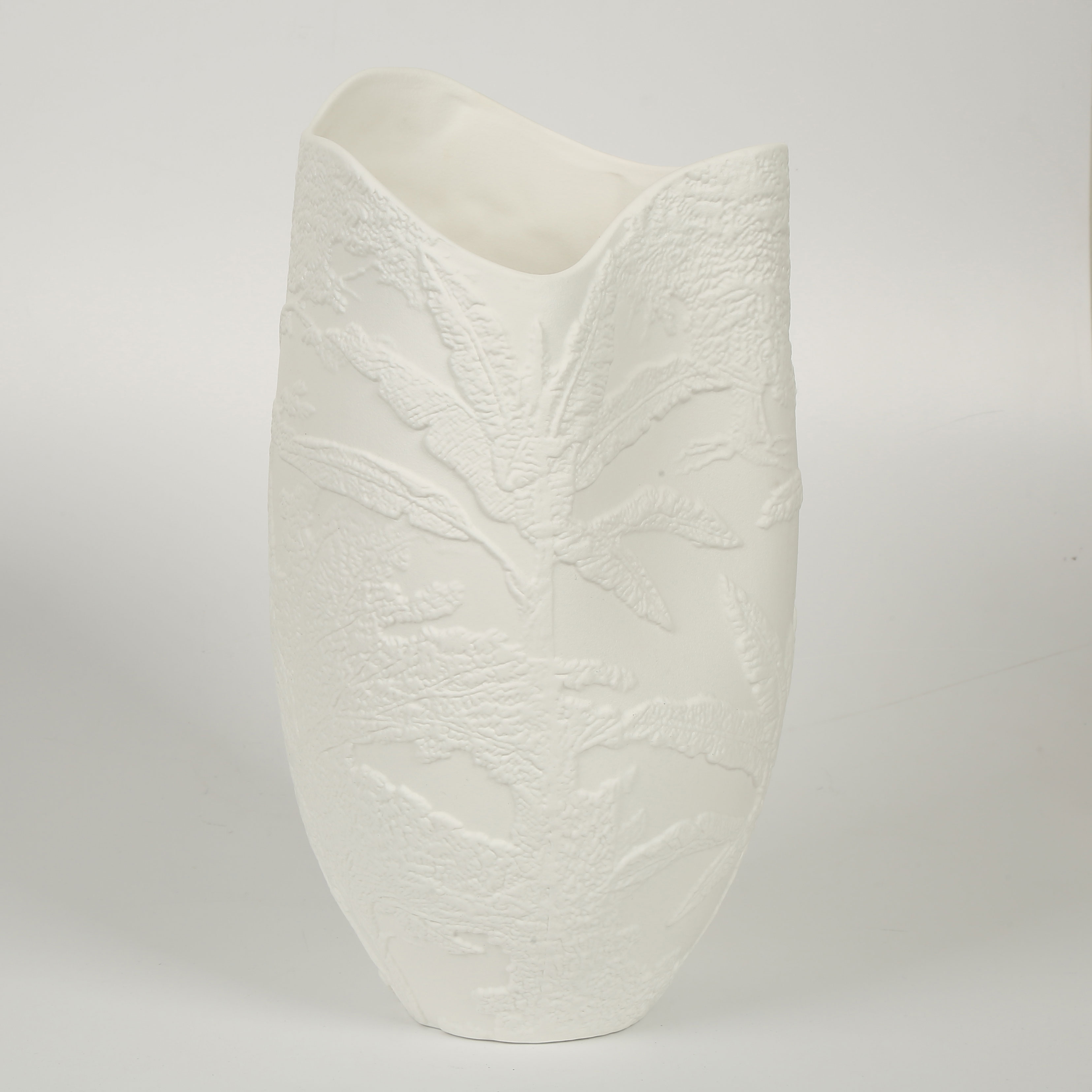 Vitale Beyaz Yaprak Dokulu Seramik Vazo 19*18*36 Cm AK.JM00001