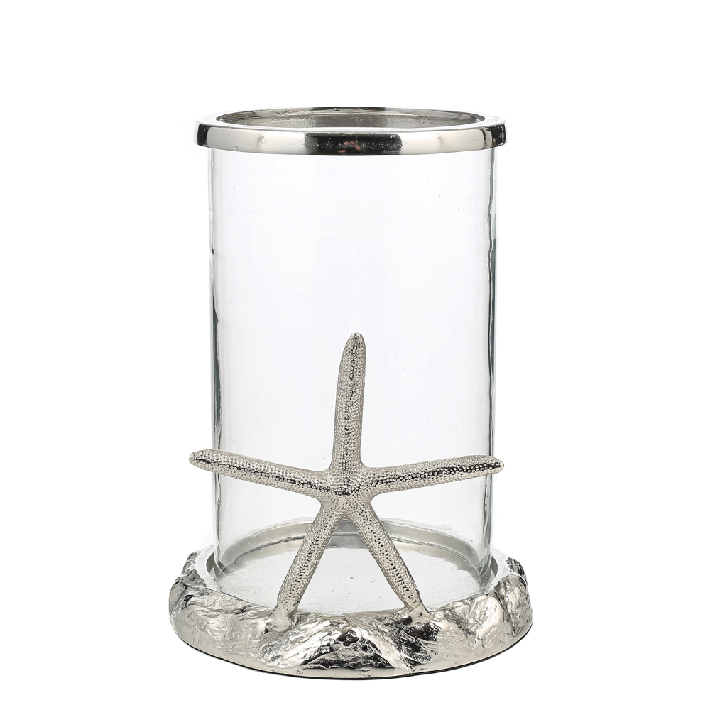 Bu mumluk, yüksek kaliteli malzemelerden üretilmiştir ve uzun ömürlü kullanım sağlar. Parlak gümüş rengi ile dikkat çeken ve üzerinde yer alan denizyıldızı detayıyla sıradışı bir görünüm sunar. Mumunuzu rahatça yerleştirebileceğiniz geniş iç kısmıyla da kullanım kolaylığı sağlar.