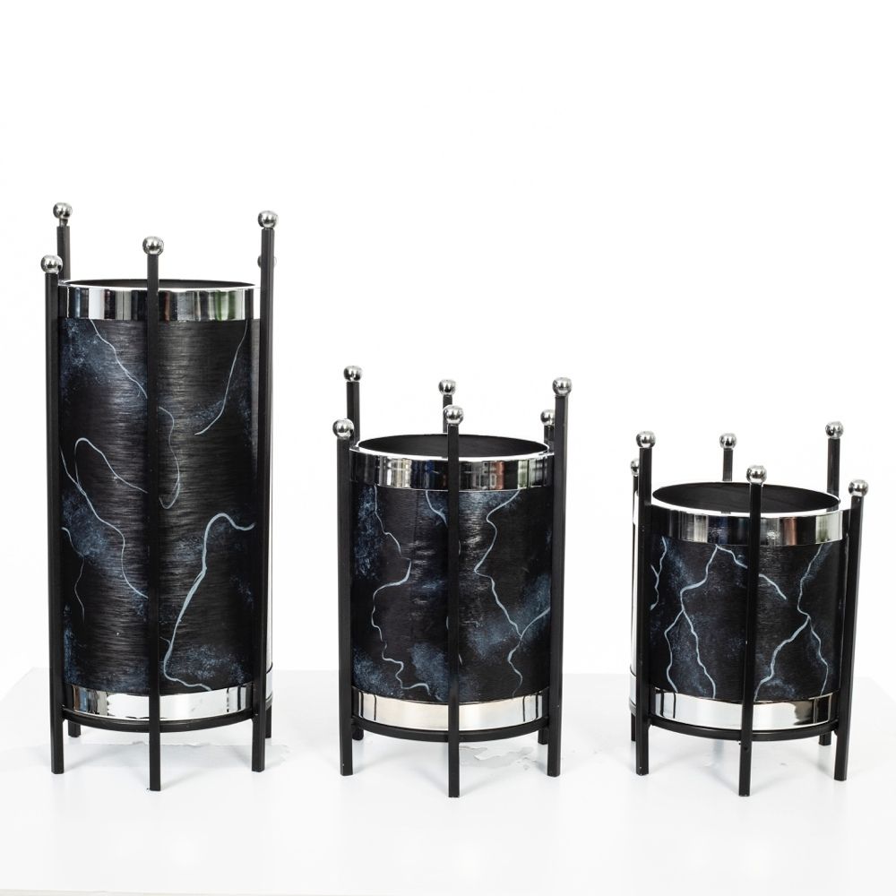 Vitale Stephan Mermer Desenli Krom 3'lü Saksı Set AK.FC0217